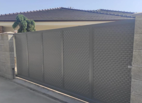 Jaký je postup realizace takové brány? Na zem se přišroubuje kolejnice z pozinkovaného železa o výšce cca 1,2 cm. Následně se na spodní část brány připevní kolečka a brána se položí na kolejnici. Po této kolejnici jezdí brána do stran. Posuvná brána není ani zdaleka tak náročná na prostor v okolí oplocení, jako samonosná. Pokud vezmeme v úvahu, že vjezdový prostor, to znamená šíře brány, má být 4 metry, budeme pro posuvnou bránu po kolejnici potřebovat na realizace ještě navíc 30 cm. Těchto 30 cm nám poslouží pro uchycení motoru a vedení. Celková šíře brány tak bude 4,3 metru. Jde o finančně přijatelnou realizaci vjezdové brány. Odsouvání do strany je výhodou, nezabírá při otevření žádné místo na pozemku oproti dvoukřídlé bráně. Nevýhodou je nutná údržba v zimě.